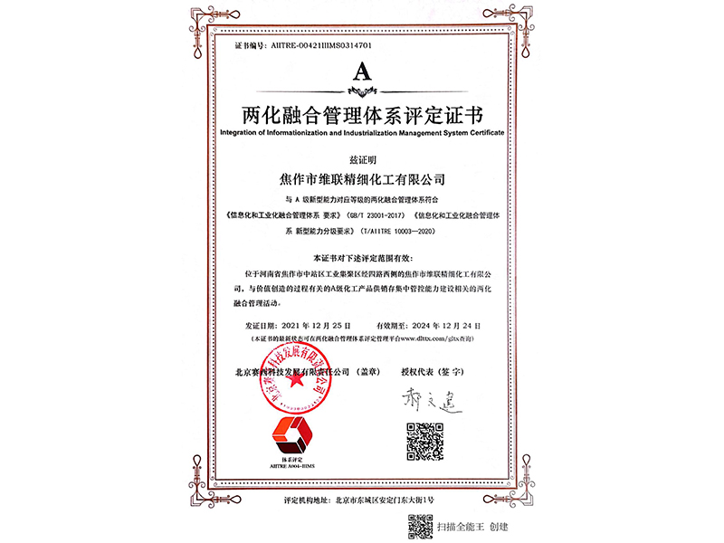 两化融合管理体系评定证书
